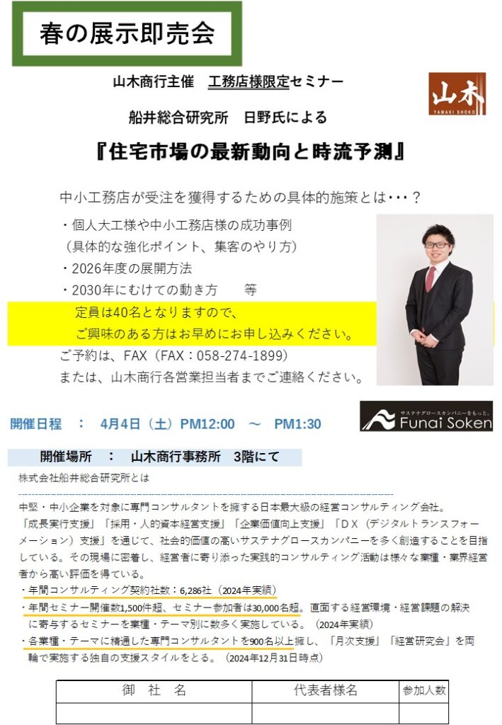 なお、お施主様ご来場の際には必ず工務店様とご同行をよろしくお願いいたします。